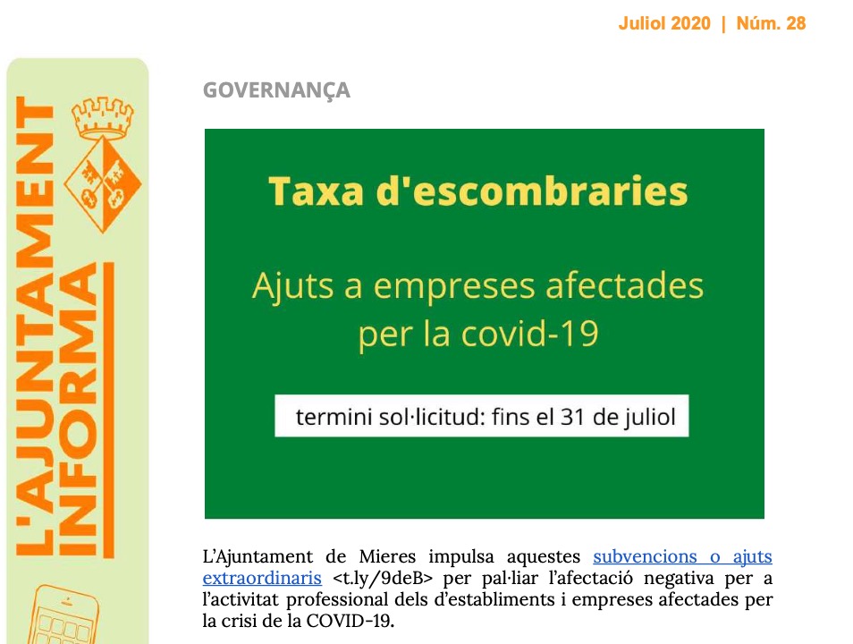 La Diputació de Girona ha programat un taller en línia, adreçat a empreses i autònoms, en el qual s’explicarà la pròrroga dels ERTOs i les condicions que han de complir els autònoms per acollir-se a les prestacions i exoneracions vigents. En el taller es resoldran tots els dubtes dels assistents sobre com acollir-se a les mesures […]