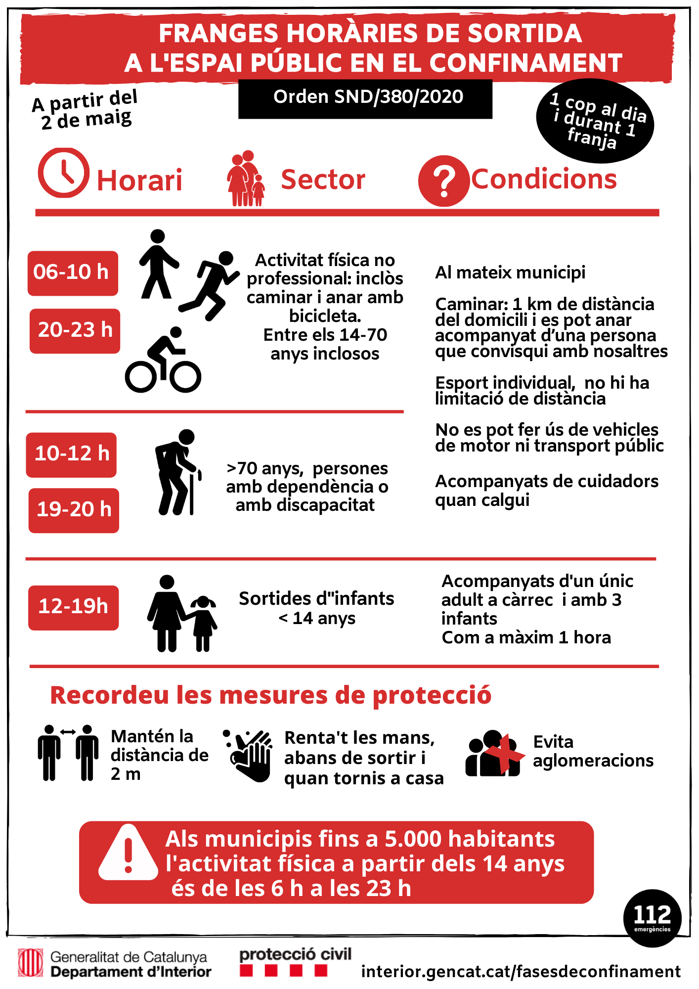 Com sabeu, avui hem entrat a la fase 1, i això comporta uns petits canvis que cal tenir en compte. Els trobareu en aquest pòster i a les preguntes freqüents actualitzades. Recordeu que cal seguir aplicant les mesures de prevenció recomanades, com ara el manteniment de la distància entre persones (2m) i el rentat freqüent […]