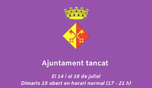 Us informem que els propers dilluns 14 i dimecres 16 de juliol, l’Ajuntament de Mieres romandrà tancat. No hi haurà, doncs, atenció al públic. El dimarts 15, però, obrirà amb normalitat, és a dir, en horari de tarda (de 17 a 21 h). La resta de dies també obrirà amb normalitat.