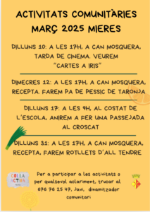 Aquí teniu el cartell de les activitats comunitàries del mes de març a Mieres.