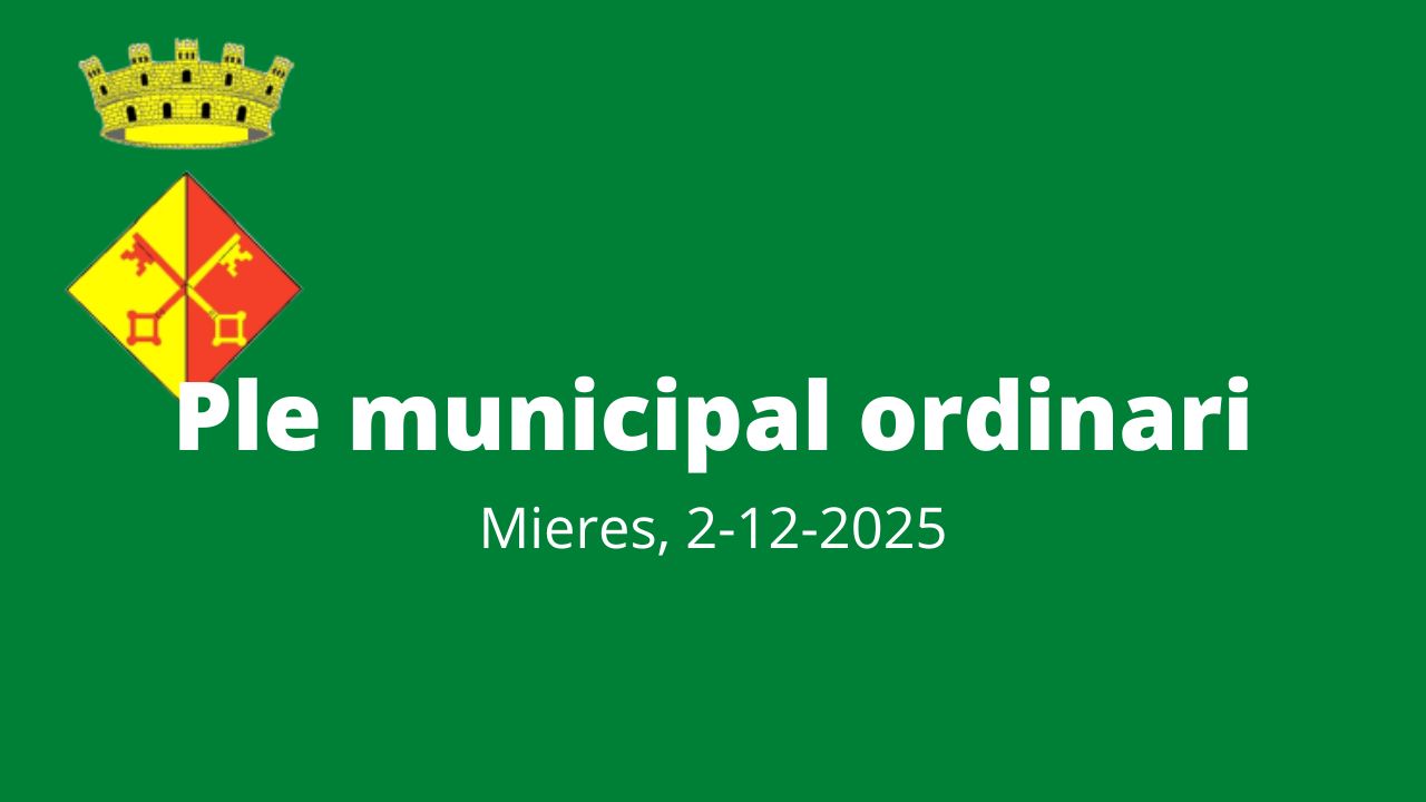 Us informem que el avui dimarts 2 de desembre de 2025, a les 18:00 hores, s’ha convocat una Sessió de Ple municipal ordinari de l’Ajuntament que se celebrarà a la Sala de Plens. Podeu seguir-lo en directe (streaming) pel canal de vídeo de l’Ajuntament.  Aquí teniu l‘ordre del dia . Acabat el Ple, la gravació quedarà penjada en aquest canal […]