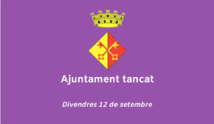 Us informem que demà divendres 12 de setembre, l’atenció al públic a l’Ajuntament serà tancada. Tornarà a obrir el proper dilluns 15 de setembre.