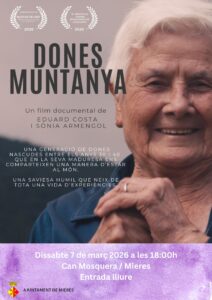 El dissabte 7 de març, a les 6 de la tarda, a Can Mosquera, es projectarà el film documental “Dones Muntanya” en el marc de la celebració del 8-M.