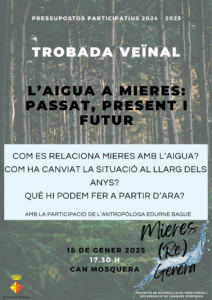 El proper dissabte 18 de gener a Can Mosquera, a les 17.30 hores, tindrà lloc una trobada veïnal dins el marc del projecte de Pressupostos Participatius Mieres (Re)Genera.