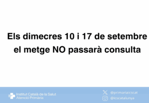 Infermeria: dimarts 16, 23 i 30 de setembre